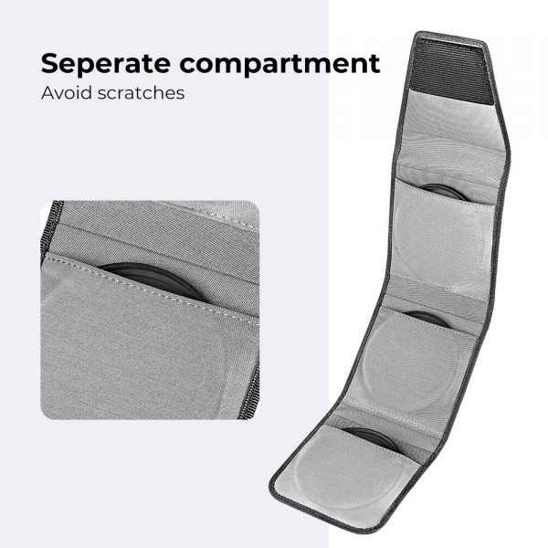 La poche externe du sac filtre pour appareil photo pour transporter vos petites affaires. Par exemple, des chiffons de nettoyage, des cartes mémoire, etc. Remarque : les filtres multifonctions ne peuvent pas être installés