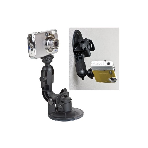Ce support de caméra utilise une ventouse en plastique. Le bras en acier massif et robuste garde votre appareil photo ou caméra de façon sécurisé et stationnaire pour une utilisation mains libres dans les situations les plus extrêmes.