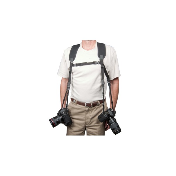 Le harnais double XL offre un accès rapide à deux appareils photos ou jumelles.