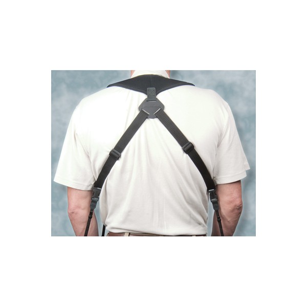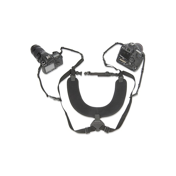 La conception unique du harnais double répartit uniformément le poids des deux appareils grâce à un coussin en néoprène en forme de U qui épouse la forme du cou.
