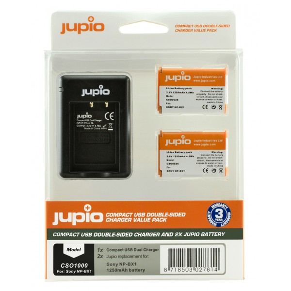 JUPIO Kit 2 batteries NP-BX1+ Chargeur double