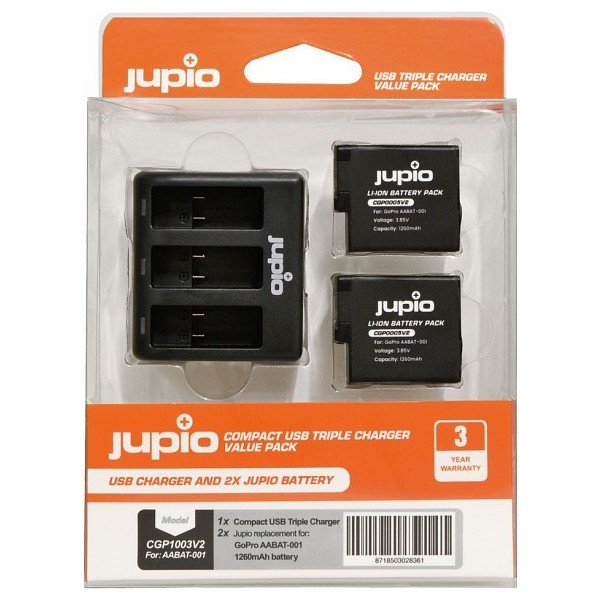 JUPIO 2x Batteries GoPro HERO 5,6,7 + Chargeur triple