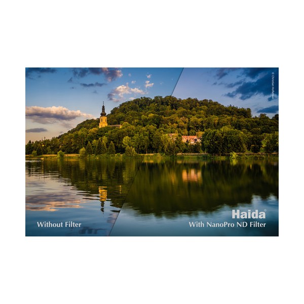 Le filtre 82 mm NanoPro MC ND 1.8 de Haida est un filtre ND avec un facteur de filtre 64x qui offre une réduction d'exposition de 6 valeurs..