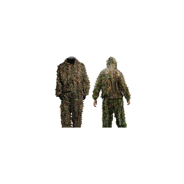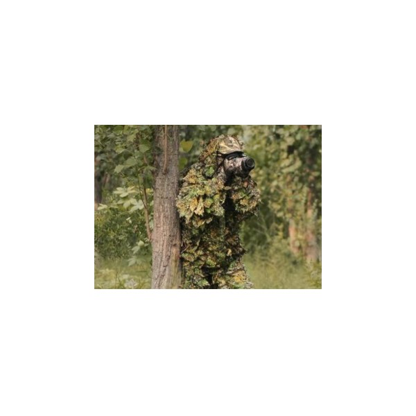 Le costume de camouflage 3D Feuillage (Ghillie Suit) est spécialement conçu pour les amateurs d’activités de plein air : chasse, observation de la nature, photographie animalière, airsoft ou paintball.