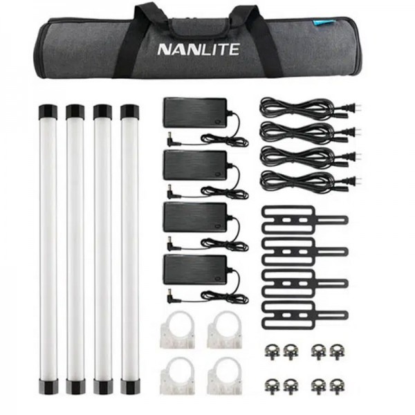 Le pack Nanlite PavoTube II 15X Quad Kit intègre 4 PavoTube II 15X, 4 clips de montage, 4 adaptateurs secteur, 8 eyebolt, 4 cordons d’alimentation, 4 serre-cables en caoutchouc et un sac de transport.