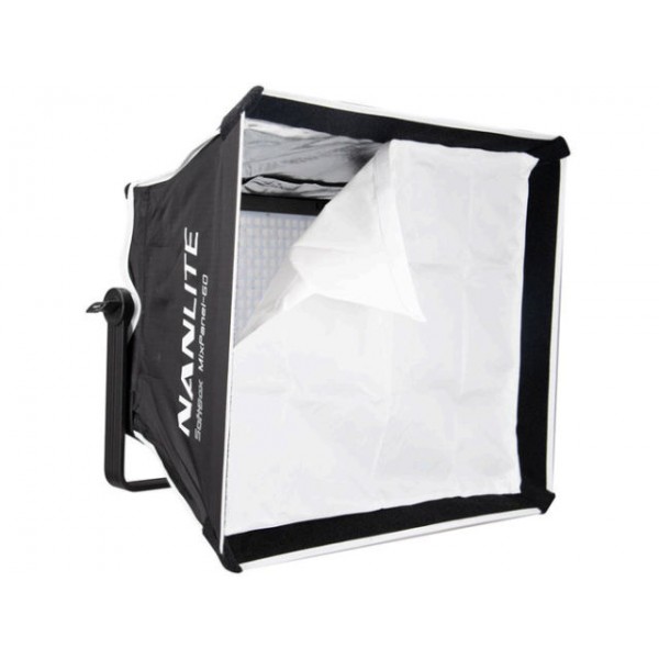 La boîte à lumière NanLite MixPanel 60 se monte à l'avant pour adoucir le flux lumineux. Il est pliable pour un rangement et un transport facile et comprend un diffuseur et une grille en tissu.