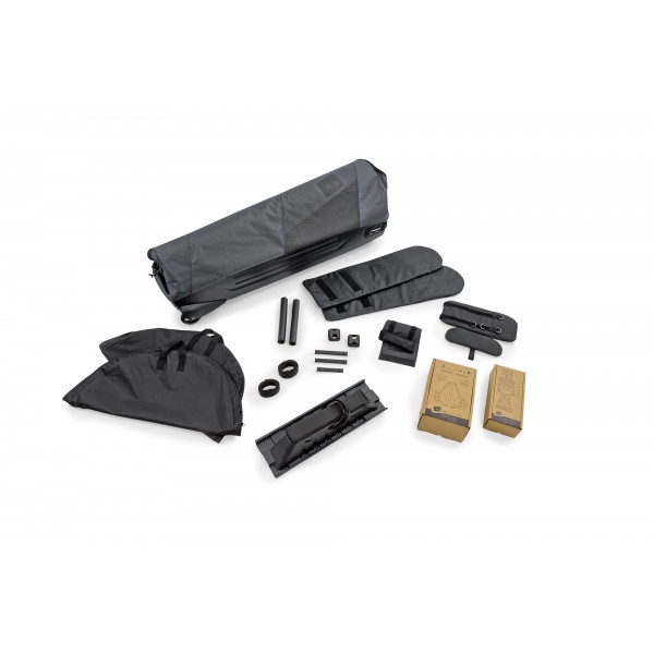 L'etui est livré avec de nombreux accessoires intérieurs qui protègent le vélo emballé et ses pièces. Avec poignées de transport, poignée de traction et quatre roulettes à roulement doux pour un confort maximal.
