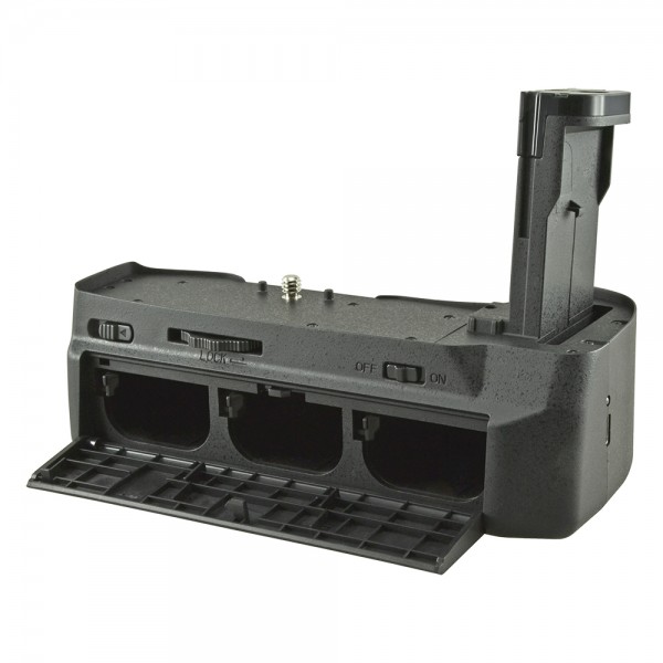 Là où la poignée d'origine ne loge qu'un maximum de 2 batteries Canon LP-E6(N), la version Jupio a la possibilité de 3 batteries LP-E6(N).
