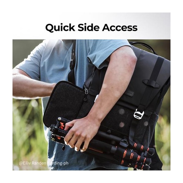 Poches internes spéciales conçues pour ranger les pièces de rechange photographiques, telles que les filtres, les bagues d'adaptation, etc. Poche avant cachée pour le stockage quotidien de vos accessoires. Les poches latérales peuvent contenir une bouteille d'eau ou un parapluie.