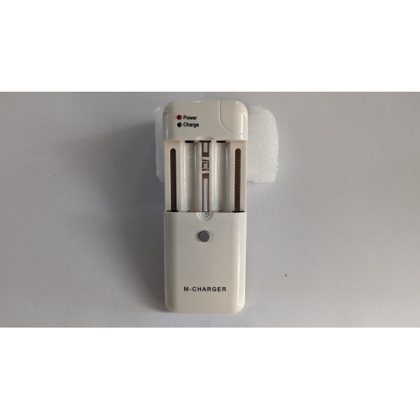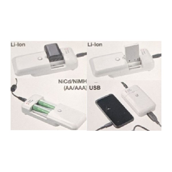 Chargeur universel compatible avec piles AA, AAA et la plupart des batteries photo et vidéo.