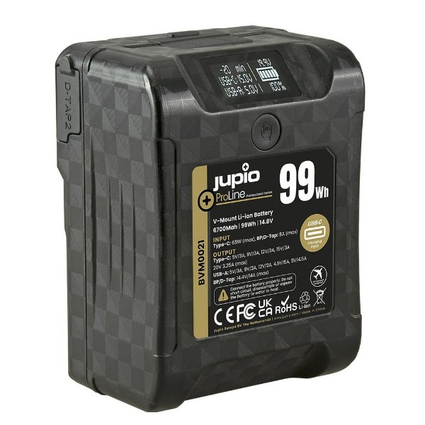 batterie V-Mount est dotée d'une batterie Li-ion de 99 Wh, 14,4 V, 6 700 mAh, de haute capacité et de haute qualité, qui offre une forte autonomie pour les projets de production vidéo et de photographie de longue durée.