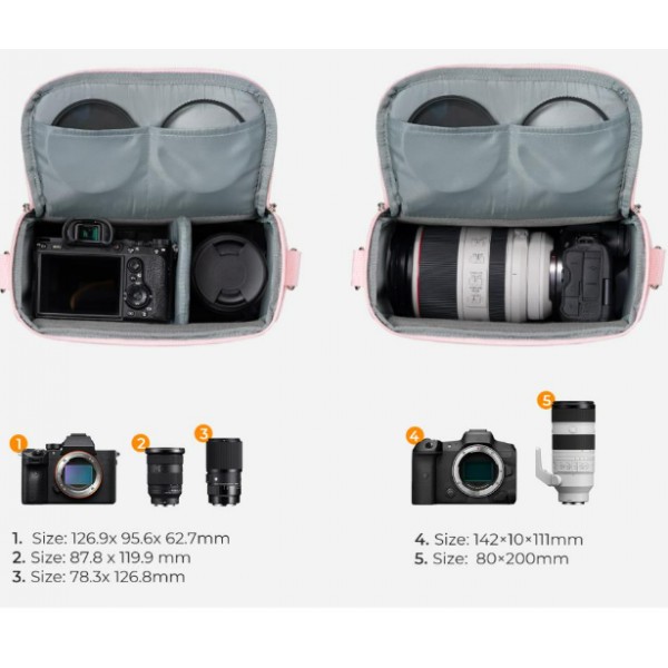 Livré avec 1 séparateur rembourré amovible pour un rangement personnalisé. Après avoir retiré les séparateurs intérieurs, il peut facilement le convertir d'un sac pour appareil photo reflex numérique. Le sac à bandoulière pour appareil photo a une large ouverture avec des fermetures à glissière métalliques YKK à double sens pour un accès facile.