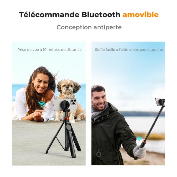 Télécommande Bluetooth intégrée au trépied.