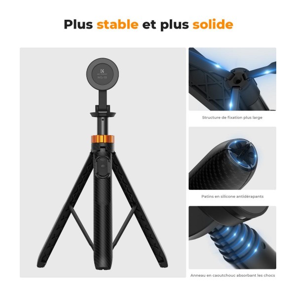 La conception de l'installation magnétique améliore la commodité d'utilisation, rendant la connexion entre le trépied et le téléphone extrêmement simple et rapide.