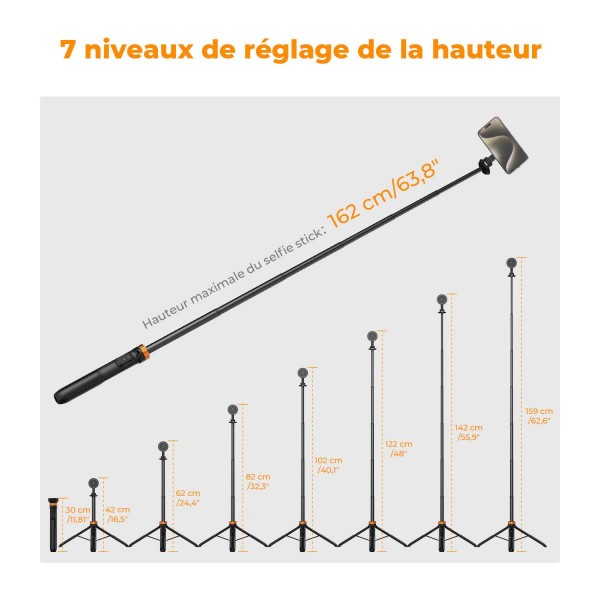 La hauteur maximale du trépied est de 162 cm.