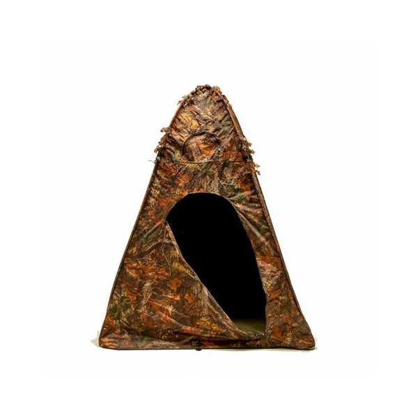La toile de la tente est bien camouflée à l'extérieur et recouverte de noir à l'intérieur pour une obscurité optimale. Vous aurez suffisamment d'espace pour vous asseoir ou vous tenir debout, et bien sûr, de la place pour votre équipement.