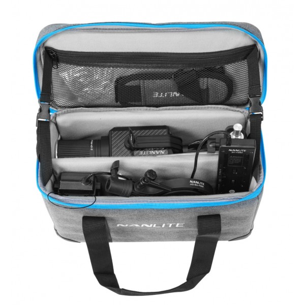 La fourche rotative et l'adaptateur Bowens inclus permettent de monter des supports parapluie pour élargir vos possibilités de modelage de la lumière. Grâce à cet adaptateur, le Forza 60B II est compatible avec une large gamme de modificateurs de lumière. De plus, la monture FM du Forza 60B II est compatible avec de nombreux modificateurs Nanlite, tels que les boîtes à lumière, ainsi qu'avec l'accessoire de projection PJ-FMM disponible séparément, qui vous permet de contrôler le modelage et la sélection de la puissance lumineuse.