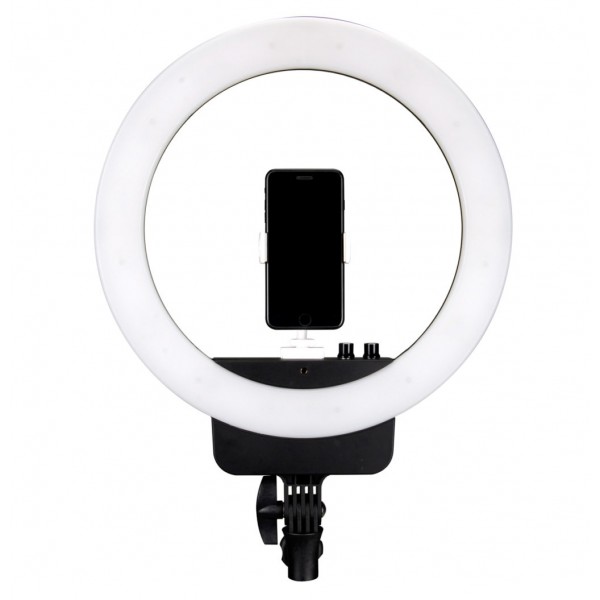 Son ouverture centrale de 30 cm vous permet d'utiliser le support pour smartphone fourni pour un effet soyeux et presque sans ombre, qui sublimera le teint de votre artiste (ou le vôtre).