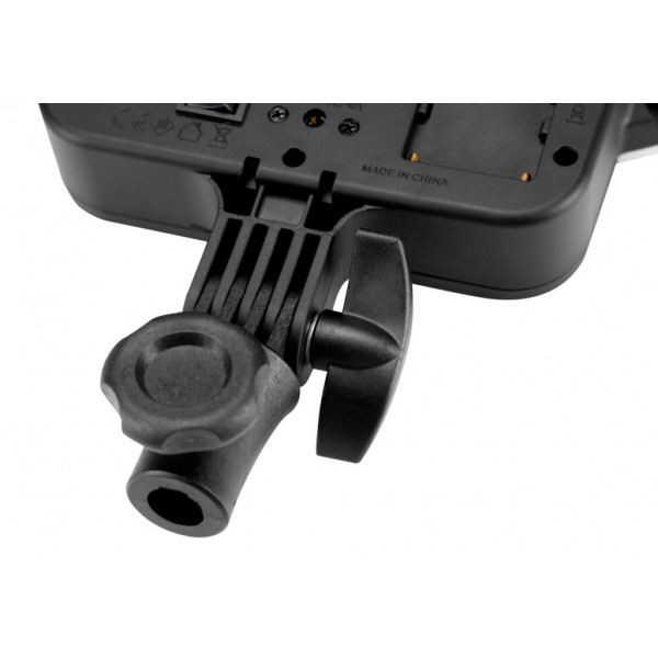 Le Halo 16 fonctionne sur secteur grâce à son adaptateur fourni, mais peut également fonctionner avec une batterie lithium-ion NP-F (en option) en cas d'absence de courant.