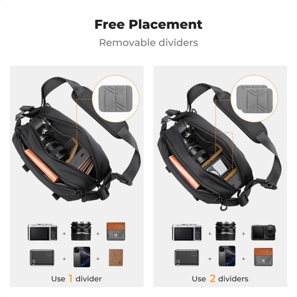 • Ce sac photo peut être utilisé comme sac à bandoulière, sac banane, sac de poitrine ou sac à main.